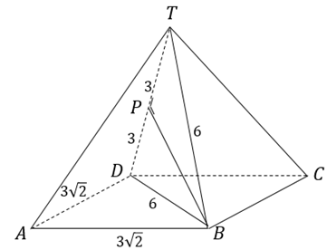 Pada limas segiempat T.ABCD, AB = BC = cm. Kemudian TA = TB = TC = TD = 6 cm. Jarak dari titik B ke garis TD adalah … cm.