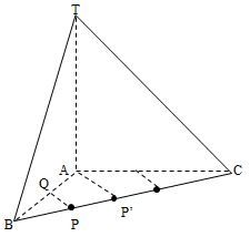 Pada limas segitiga T.ABC, AT, AB dan AC saling tegak lurus, dimana AB = AT = AC = 2. Titik P berada di CB dengan CP : PB = 3 : 1 dan titik Q berada di tengah garis AB. Sudut antara garis PQ dan TA adalah…