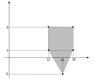 Pada pemetaan topografi kota, titik batas kota adalah A(12, 9), B(20, 9), C(20, 2), D(16, -3) dan E(12, 2). Koordinat diukur dalam kilometer. Luas kota tersebut adalah....