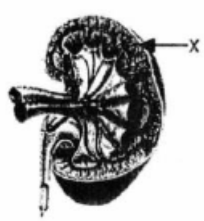 Pada penampang melintang ginjal berikut ini, bagian X berfungsi untuk