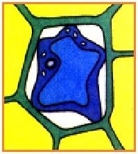 Pada pengamatan sel tumbuhan (sel umbi bawang merah) dengan pewarnaan lugol, dapat dilihat lepasnya membran sel dari dinding sel seperti pada gambar di bawah ini.