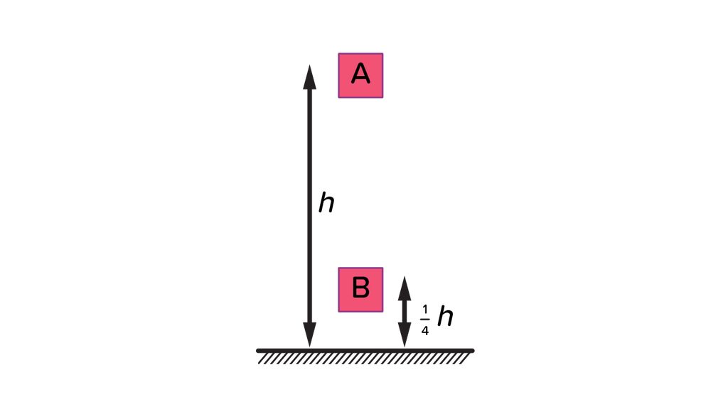 Pada percobaan di bawah ini, sebuah benda dijatuhkan bebas dari ketinggian h dengan tanpa kecepatan. Posisi B pada ketinggian dari lantai. Hitunglah perbandingan besar energi potensial benda dengan energi kinetik benda pada posisi B ...