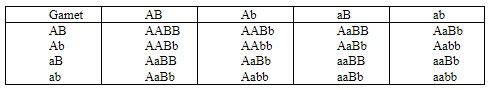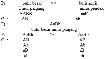 Pada persilangan antara tanaman padi bulir besar umur panjang (AABB) dengan tanaman padi bulir kecil (aabb) umur pendek diperoleh semua keturunan bersifat bulir besar umur panjang (AaBb), kemudian sesama keturunan F1 dikawinkan. Berapa kemungkinan jumlah individu genotip F2 homozigot dominan (AABB) dan homozigot resesif (aabb) jika keturunan F2 berjumlah 640?