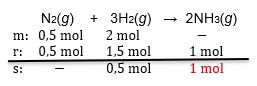 Pada reaksi 14 gram gas N2 dengan 4 gram gas H2 dihasilkan gas NH3 sesuai dengan persamaan reaksi: