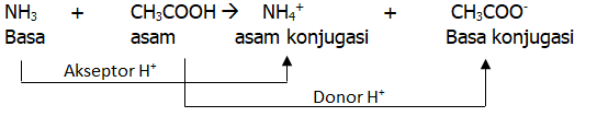 Pada reaksi NH3 + CH3COOH NH4+ + CH3COO-, pasangan asam – basa konjugasi yang benar adalah....
