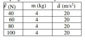 Pada sebuah benda dengan massa dikenakan berbagai macam variasi gaya . Hasilnya benda mengalami percepatan sebesar . Penjabaran data hasil pengamatan terlihat pada tabel berikut: