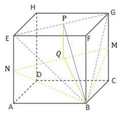 Perhatikan bahwa masing-masing garis BG, BE, dan EG adalah diagonal bidang kubus sehingga segitiga BGE adalah segitiga sama sisi. Jika P adalah titik tengah ruas garis EG, maka BP adalah garis tinggi segitiga BGE.