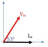 Pada suatu rangkaian arus bolak-balik beda sudut fase antara nilai maksimum tegangan dan nilai maksimum arus adalah 53o. Jika diketahui nilai tegangan mendahului nilai arus, pernyataan yang benar mengenai diagram fasornya adalah ….