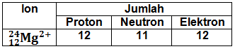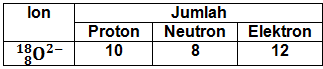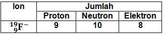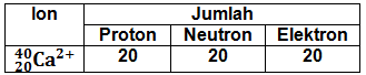 Pada tabel tertera jumlah proton, neutron, dan elektron beberapa ion. Tentukan data yang benar.