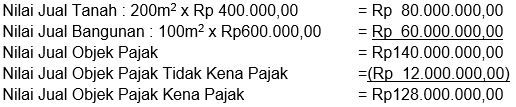 Pada tahun 2019 Pak Handi membeli rumah dan langsung menempati rumah tersebut. Luas Tanahnya 200 m2 dengan nilai jual Rp 400.000/m2, Luas bangunan 100m2 dengan nilai jual Rp 600.000/m2. Nilai Jual Objek Pajak Tidak Kena Pajak (NJOPTKP) Rp 12.000.000. Jika pajak yang dikenakan dengan tarif 0,2% maka besarnya PBB terutang untuk tahun 2019 adalah ....