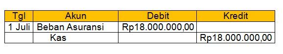 Asuransi dibayar di muka debet Rp 18.000.000