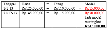 Ekuitas meningkat sebesar Rp15.000,00