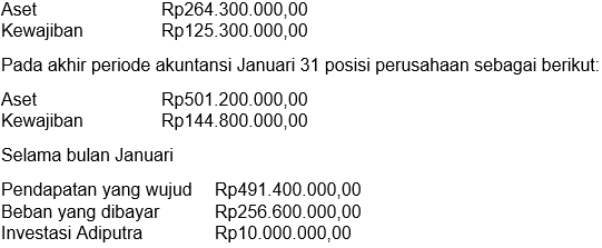 Pada tanggal 1 Januari 2018 Bengkel Adiputra memiliki posisi keuangan sebagai berikut: