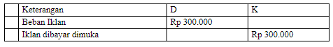 Pada tanggal 1 Oktober 2012 PT Dirgahari membayar beban iklan untuk jangka waktu satu tahun sebesar Rp1.200.000,00. Beban iklan tersebut dicatat sebagai harta. Jurnal penyesuaian untuk beban iklan tersebut adalah ….