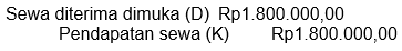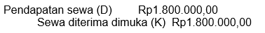 Pendapatan sewa (D) dan Sewa diterima dimuka (K) Rp1.800.000,00