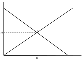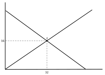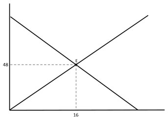 Pada tingkat harga Rp900,00 jumlah barang yang ditawarkan sebanyak 450 unit sedangkan pada tingkat harga Rp1.000,00 jumlah barang yang ditawarkan 500 unit. Jika fungsi permintaanQ = 80 – 2P, kurva keseimbangan pasar berikut ini yang sesuai dengan data-data tersebut yaitu…
