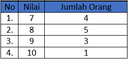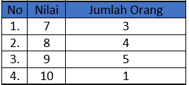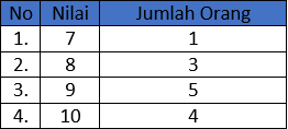 Tabel yang sesuai untuk data nilai seperti di atas yaitu ….