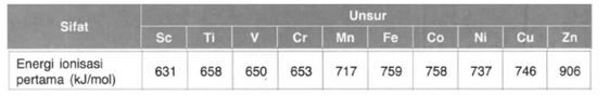 Pada unsur-unsur transisi periode ke-4, nilai energi ionisasi pertama yang paling kecil dimiliki oleh unsur…