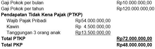 Pak Agus bekerja di sebuah perusahaan BUMN dengan mendapatkan gaji besih Rp10.000.000,00/bulan. la mempunyai seorang istri dan 4 orang anak. Berdasarkan data diatas hitunglah pajak penghasilan yang harus dibayar oleh Pak Agus per bulan ....