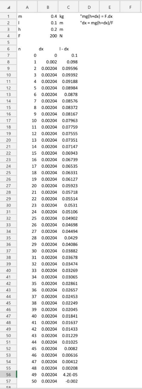 . Pada pukulan kedua dan seterusnya, jarak antara ketinggian awal palu dan kepala paku semakin bertambah sejauh