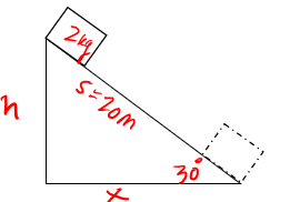 Panjang lintasan bidang miring adalah 20 m dengan kemiringan sudut 30o tanpa gesekan, bila massa benda 2 kg. Hitunglah perubahan energi kinetik benda saat menyentuh dasar bidang miring!