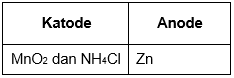 Pasangan elektrode sel elektrokimia berikut yang digunakan pada baterai kering biasa adalah ....