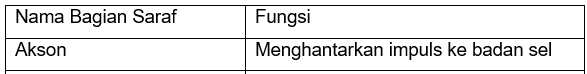 Pasangan yang tepat antara bagian sel saraf beserta fungsinya dalam tabel di bawah ini adalah...