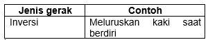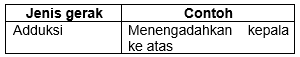 Pasangan yang tepat antara jenis gerak beserta contohnya adalah ....