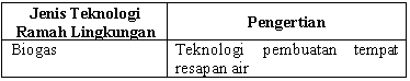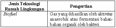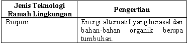 Pasangan yang tepat antara jenis teknologi ramah lingkungan dengan penjelasannya dalam tabel berikut adalah ....