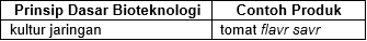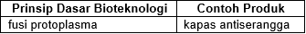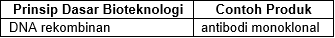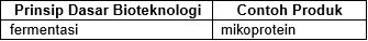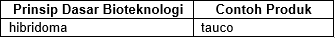 Pasangan yang tepat antara prinsip dasar bioteknologi beserta contoh produknya adalah ...