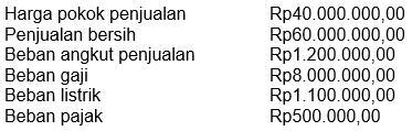 PD Harapan Jaya pada akhir periode akuntansi memiliki data keuangan sebagai berikut.