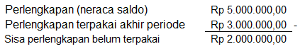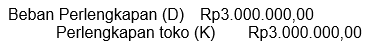 PD Maya membeli perlengkapan toko seharga Rp5.000.000,00. Sampai akhir periode, perlengkapan yang terpakai sebesar Rp3.000.000,00. Nilai perlengkapan pada Neraca Saldo Penutupan adalah ....