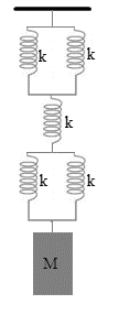 Tiap pegas identik memiliki konstanta k = 200 N/m. Jika sistem pegas tersebut digantungi beban M sebesar 3 kg, besar energi potensial pegas yang dihasilkan pada sistem tersebut adalah ….