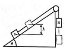 Dua buah benda A dan B yang masing – masing bermassa mA dan mB terhubung dengan tali ringan dan tidak elastik melalui suatu katrol yang massanya diabaikan. Benda A ditempatkan pada suatu permukaan bidang miring licin dengan sudut kemiringan θ = 30
