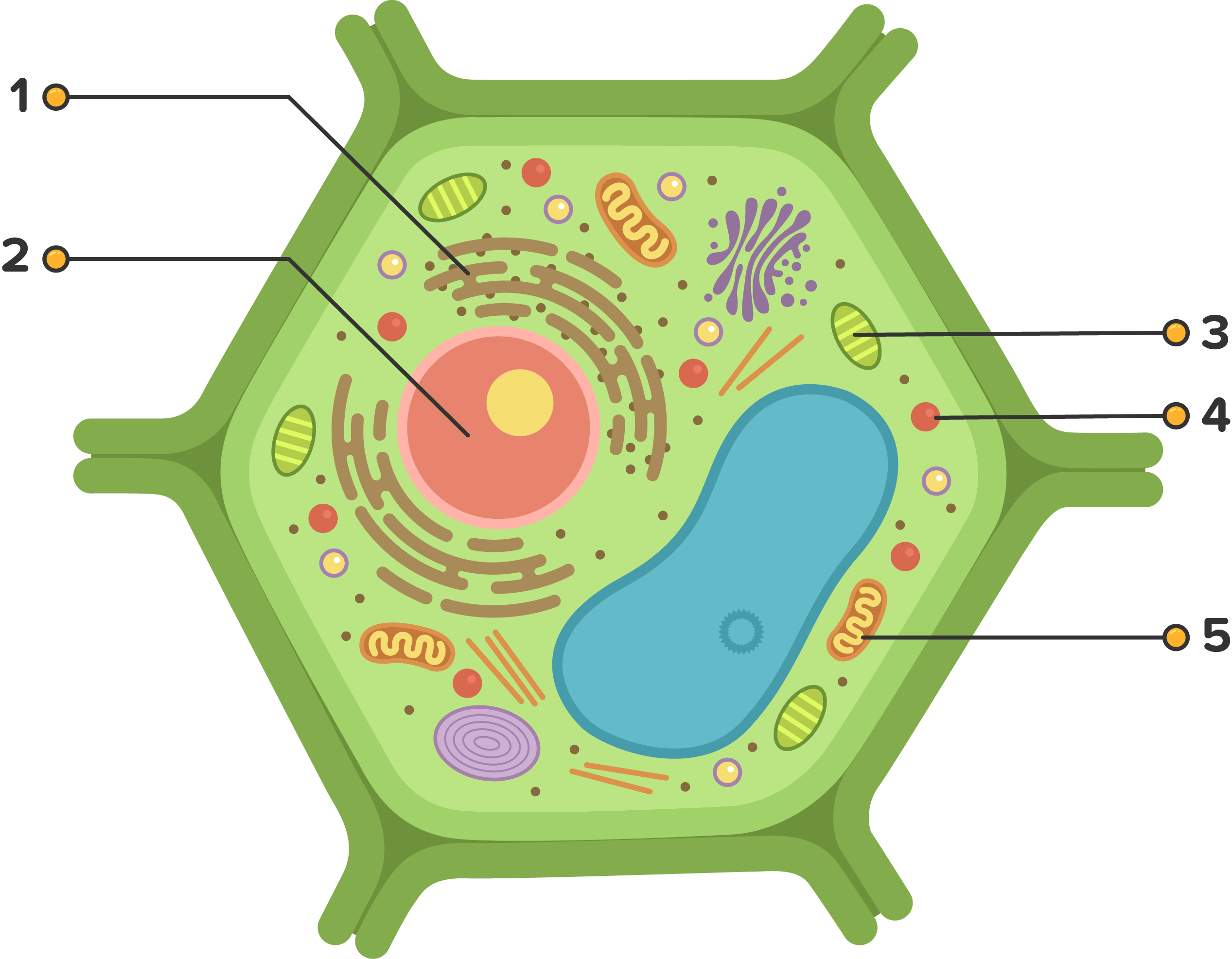 Berdasarkan gambar di atas, organel kloroplas ditunjukkan oleh nomor ….