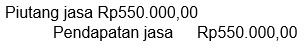 Pendapatan yang masih harus diterima atas jasa yang diberikan tetapi belum tercatat adalah sebesar Rp550.000,00 maka elemen penyesuaiannya adalah ....