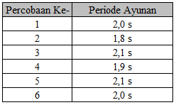 Pengukuran periode ayunan diperoleh data sebagai berikut.