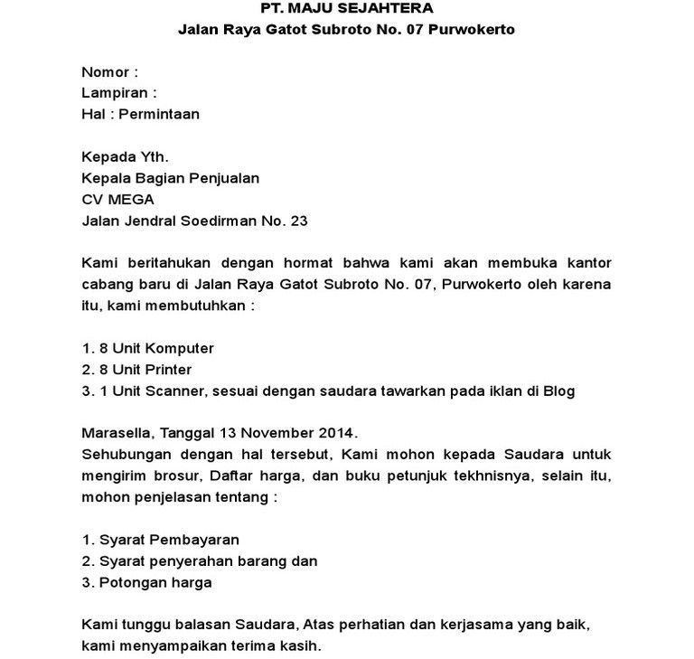 Penjelasan apa yang dibutuhkan dalam surat dagang tersebut?