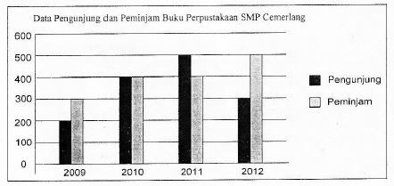 Pada tahun 2009 jumlah peminjam buku lebih sedikit dari jumlah pengunjung.