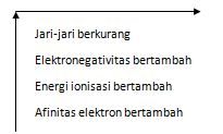 Penyataan berikut tentang sifat-sifat periodik unsur yang tidak tepat adalah...
