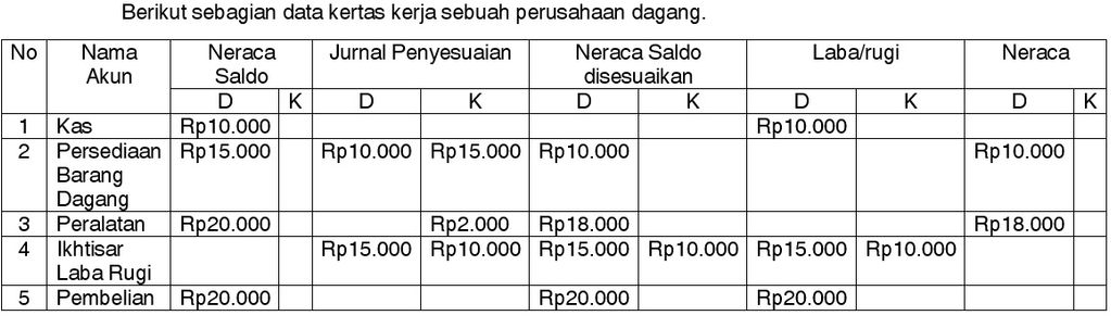 Penyelesaian kertas kerja yang tepat dengan menggunakan metode ikhtisar laba rugi adalah….