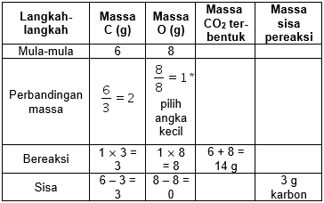 6 gram karbon dengan 8 gram oksigen