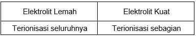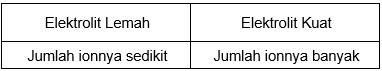 Perbedaan antara elektrolit kuat dan elektrolit lemah yang benar adalah ....