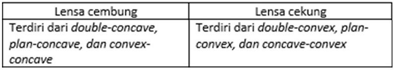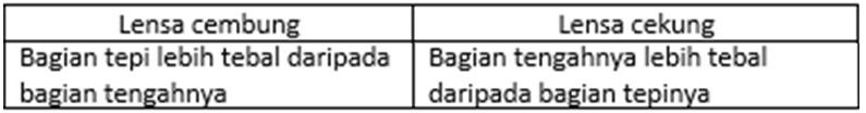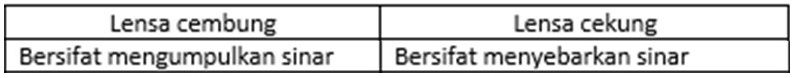 Perbedaan lensa cembung dan lensa cekung yang tepat adalah ….