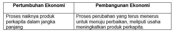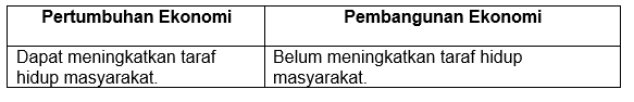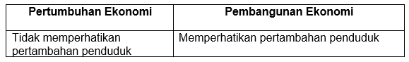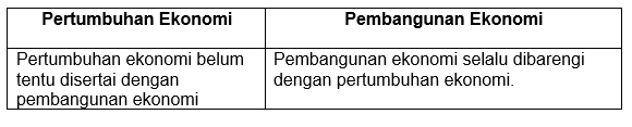 Perbedaan pertumbuhan ekonomi dan pembangunan ekonomi secara umum bisa kita lihat pada tabel berikut ini, kecuali .... (OSN 2019)