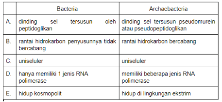 Perbedaan yang tepat antara bacteria dan archaebacteria adalah ….