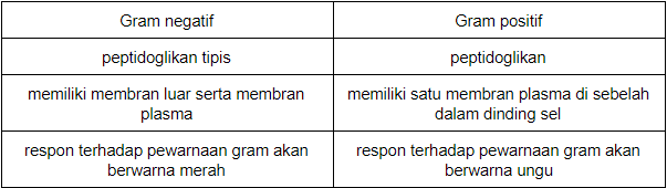 Perbedaan yang tepat antara bakteri gram negatif dan bakteri gram positif adalah ….
