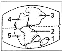 Pergerakan Pangea seperti gambar akan membentuk benua Afrika ditunjukan angka ...