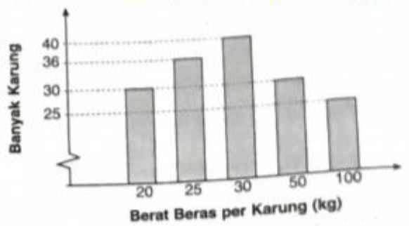 Data berat beras per karung dalam gudang persediaan beras sebagai berikut!