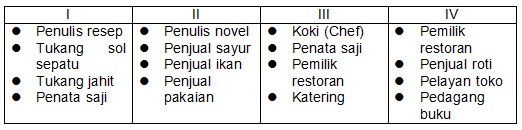 Jenis pekerjaan yang berkaitan dengan bidang ekonomi kreatif kuliner ditunjukkan pada kolom ....
